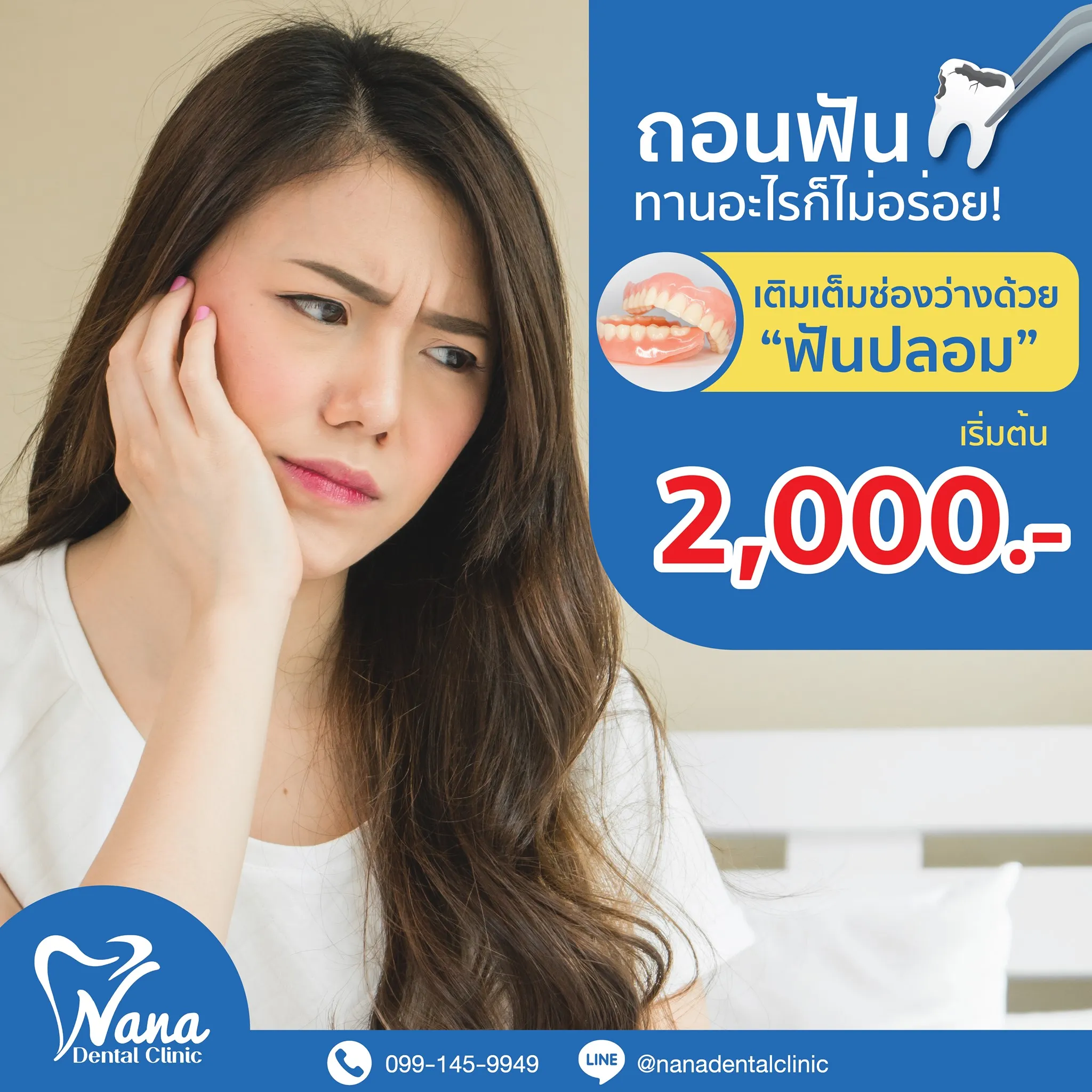 ทานอะไรก็ไม่อร่อย! เติมเต็มช่องว่าง สร้างความมั่นใจให้คืนกลับมา มื้อไหนก็ทานเพลิน ด้วย “ฟันปลอม” ที่คลินิกทันตกรรมนานา จ่ายเบา ๆ เริ่มต้น 2,000 .- จองคิวเลย